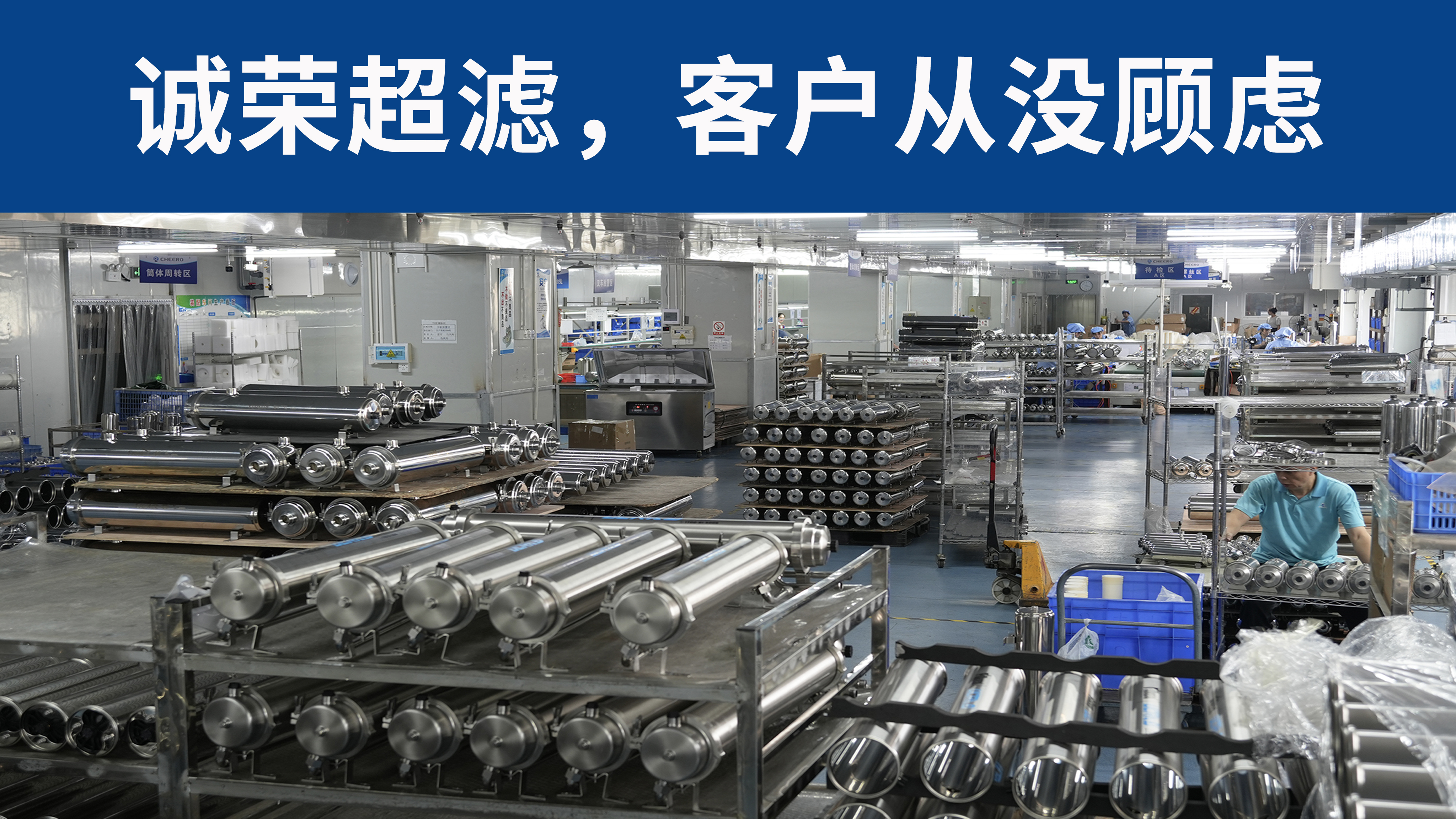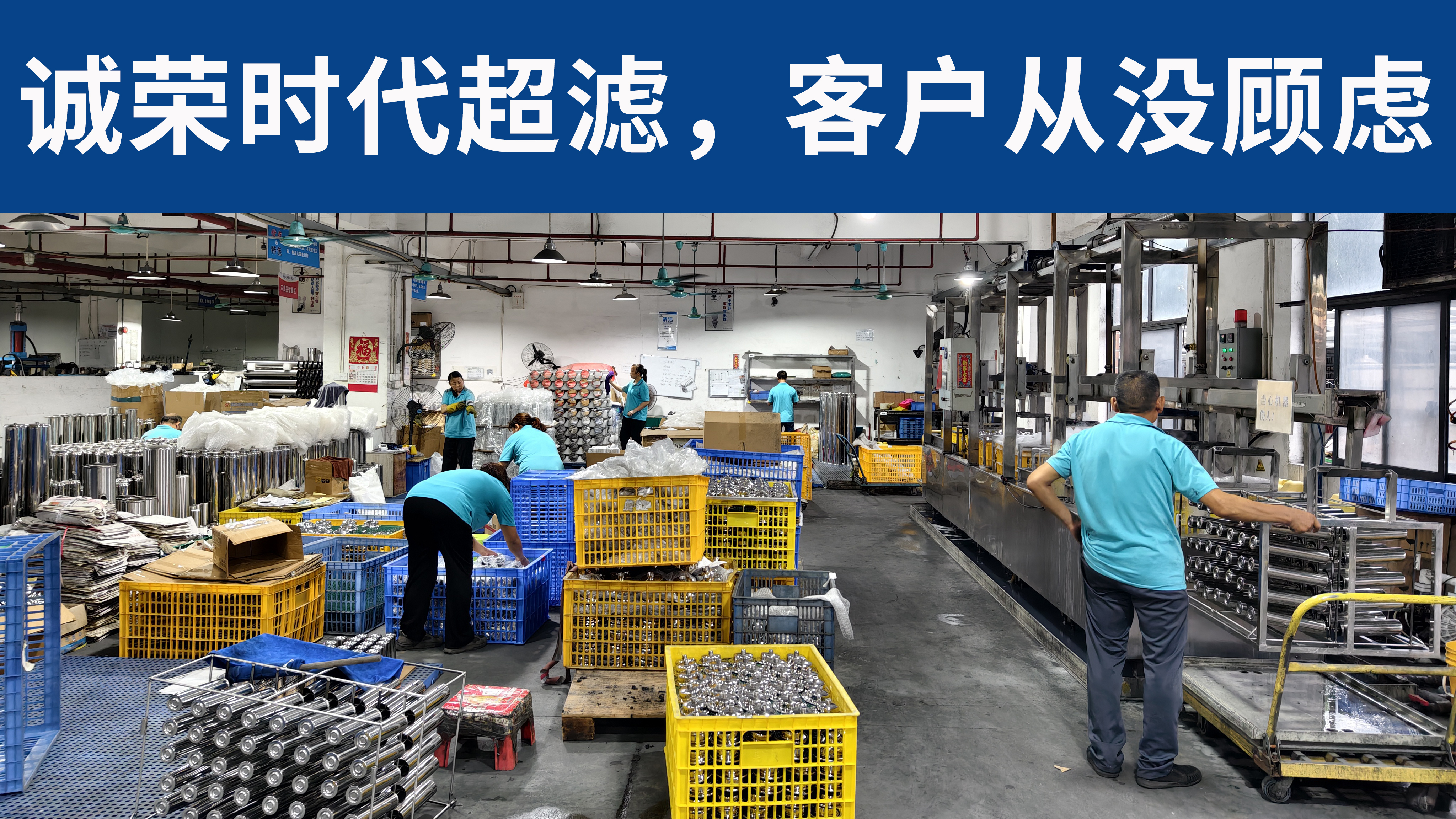 诚荣超滤工厂,管道超滤界前三甲,行业内没有第二家的全供应链工厂,全工序的质量控制和严格的全员质量考核,确保诚荣制造的超滤净水器,品质比保险公司还保险,服务比客户还客户。