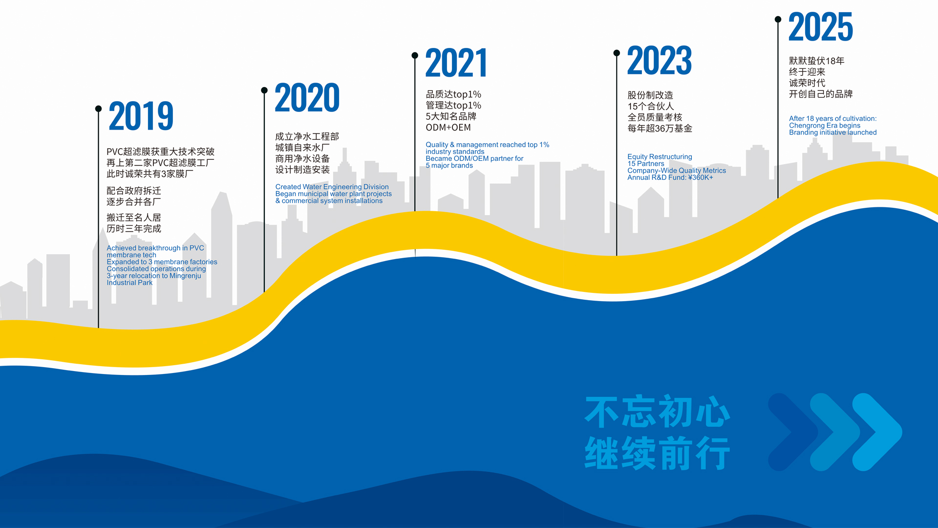2025年中旬,默默蛰伏管道超滤18年,诚荣终于迎来自己的品牌,诚荣时代®,诚荣要让全球同行对标诚荣时代®,以行业内TOP1%的制造质量、产品功能与结构设计,服务好TOP2%对产品品质有要求的高端用户。