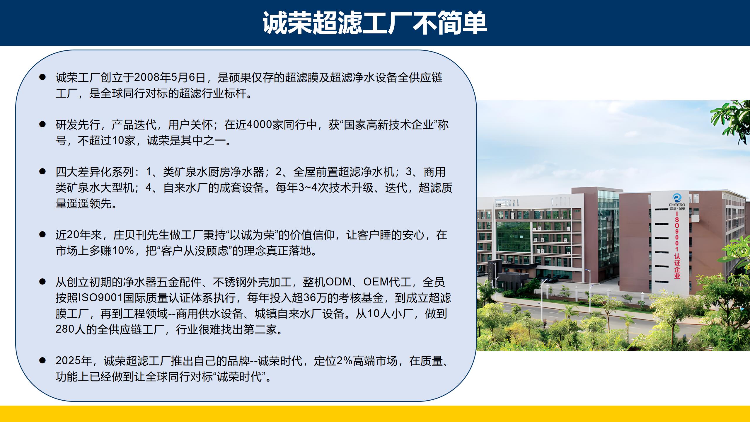 上篇文章中,我讲了我们遇到了一个既不专业也不靠谱的水管安装师傅,这件事让我意识到专业与靠谱是获取客户信任的前提。这就像我们都知道钱是好东西,但往往越是好东西,就越有门槛,如果不能给客户提供实实在在的价值,那不管付出什么样的努力,都赚不到钱。所以,这个客户的前置过滤器,我们给她安装好了没有?毕竟,我们作为销售净水器的一方,发现问题,吐槽问题,并不能体现我们的价值,我们的价值在于为客户解决问题,不让客户操心。诚荣时代一直把客户体验放在第一位,帮客户把前置过滤器安装妥当也是我们工作的一部分,那必然是安装好了的。为了做好安装工作,诚荣时代团队的小年轻一直忙到三更半夜,这是为了让客户第二天便可用上经诚荣时代前置过滤器净化的水。我一直觉得客户买的不是产品本身,而是我们产品与团队能够为客户提供的价值。此次安装,我发现超滤净水器对于大部分人而言,依然属于小众产品。很多水管师傅都没见过这种净水器,能够正确安装的师傅也比较少,所以我特意交代我们团队的小年轻,第二次安装,一定要实时跟进,确保师傅安装正确,既要实用,又要美观。对比第一次的错误安装,我们第二次安装做了哪些改进呢?第一,第一个师傅接的水管既不美观,也不合理,所以我们又让师傅额外购买了一些管材,师傅那边买不到角码,我们直接外卖了一对角码给他。为了让客户充分享受到超滤的好,由我们负责安装,购买管材,而且管材一定要买质量好的,毕竟我们的前置过滤器成本那么高,在安装管材上降低成本,很容易拉低诚荣时代的品牌形象。这种吃力不讨好的错误,我们绝对不犯。第二,调转了净水水龙头和进水口的方向,重新设计了管道的排布,这样既节约管材,又美观,也方便客户以后做维护。第三,上次客户要求师傅把下筒体锁死在墙面上,这种安装方式是不对的,下筒体只需搭在角码上就可以了,因为清洁滤芯的时候,下筒体需要脱卸,这也是我们之所以这么设计的原因。虽然客户衣食父母,但我们比客户更专业,所以跟客户讲明白之后,我们又重新买了一对角码。 第二天一大早,收到了客户的货款。我觉得客户主动给我打货款,不仅是对产品的认可,也是对我们服务的认可。我认为是诚荣时代的小年轻,他那份即便工作到凌晨,也要帮客户把前置净水器安装好的工作态度,打动了客户。我们总是说,于细微处见真章。客户的信任从何而来?就是是能今天解决的问题,绝不拖到明天,能一个小时解决的问题,绝不延长到两个小时。因为诚荣时代是一个定位高端的工厂品牌,我们的目标客户不缺钱,但是他们的时间与精力都无比宝贵。我们的产品虽然价格高一点,但是我们能为产品品质负责,为客户体验负责,为客户解决时间与精力去创造更大的价值。其实,我们的价格也不高,因为诚荣时代手洗外压膜滤芯,质保5年,筒体采用食品级304不锈钢制造,100%抛光、打磨,高温清洗,确保卫生安全,且真正做到了十年不生锈,十年不漏水,这样的品质,除了诚荣时代,行业内屈指可数。所以,为了服务好我们的客户,我们自己也要计算时间与精力成本。诚荣时代只跟对产品品质有要求的有钱客户合作,如果您觉得价格非常重要,那诚荣时代净水器,肯定不适合您,因为我们的品质很高,技术含量很高,要负责给280名同事发工资。卷价格,诚荣时代卷不赢。找我们,要比就比品质与服务,诚荣时代绝对不会让你失望。诚荣超滤,客户从没顾虑十年不生锈十年不漏水十年也售后诚荣时代净水器,不在质量上原谅自己自我介绍:庄贝刊,70后,潮汕人,草根创业18年。诚荣超滤工厂,专注不锈钢管道超滤18年,全厂280名同事,只为做好一个大单品。行业内无人不知,无人不晓的前三甲工厂,管道超滤界难找第二家的全供应链工厂。多个国内外一线净水器品牌,找来找去,最终还是选择与诚荣超滤工厂合作,因为放心。2025年,诚荣超滤工厂终于有了属于自己的品牌,诚荣时代,开始涉及C端。这是为了离终端用户更近,我希望听到你们真实的使用反馈,在产品功能,结构设计与制造质量上,继续精进,不辜负大家对诚荣时代的信任。有关超滤的任何问题,欢迎加我微信一起交流:K13828858032
