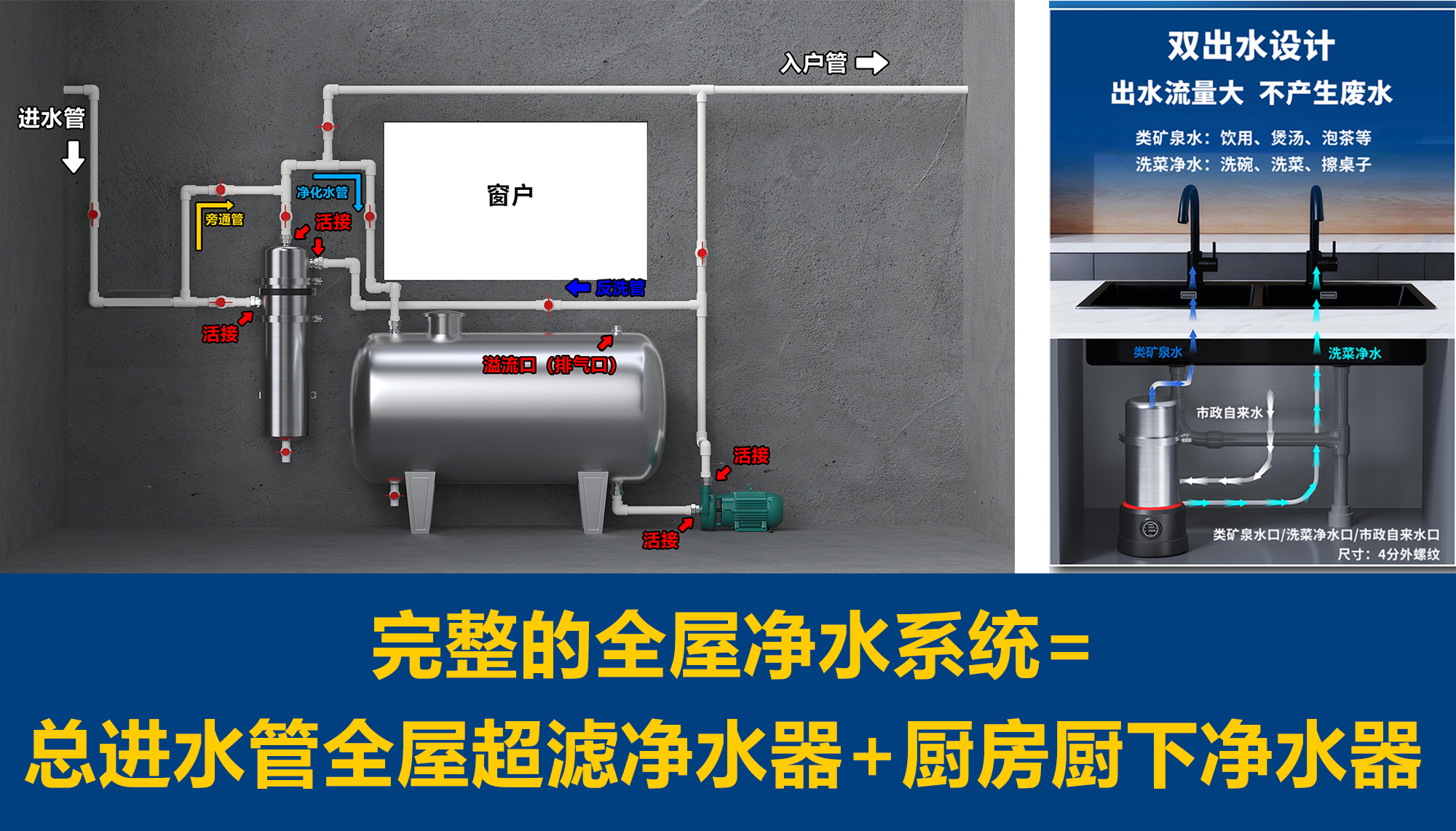 完整的全屋净水系统=总进水管微滤净水器+厨房厨下净水器
