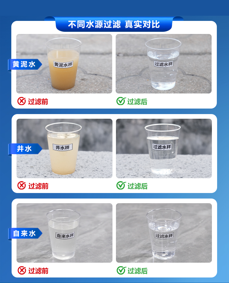 从过滤精度来看,想要把自来水与农村浑浊井水中细微的泥浆、铁锈等杂质拦截干净,超滤净水器,是难有对手可比的选择。除非,你钱很多,觉得交点学费,绕点弯路也可以,就当体验生活了。