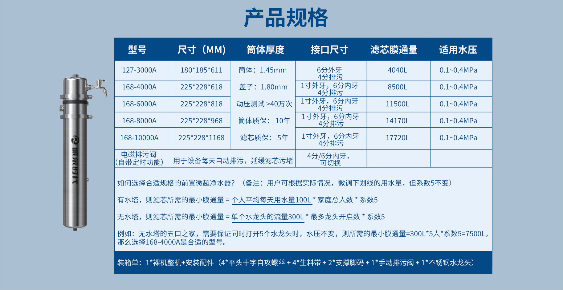 跟他聊了一下,我就找到原因了,他买的滤芯规格太小了,而且它把超滤净水器安装在水箱后面,导致超滤净水器的制水速度跟不上家里的用水速度。所以我根据他家里的用水量计算了适合他的滤芯规格,推荐了合适的型号给他,顺便,让他把之前买的那台超滤净水器作为一个反冲洗装置使用,专门用来反冲洗诚荣时代的前置净水器,这样可以彻底把滤芯洗透,滤芯用5年完全没问题。